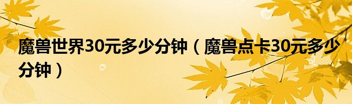 魔兽世界30元多少分钟(魔兽点卡30元多少分钟)