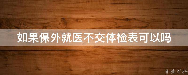 保外就医不交体检表不可以。保外就医是罪犯因患有严重疾病,根据国家相关法律和政策,经司法机关批准让其取保监外医治的执行方法。根据相关法律规定,被保外就医的罪犯须由罪犯本人或其亲属填写呈请保外就医审批表,经负责审批的监狱、劳改队负责人审查同意后,报请人民检察机关审查批准;准予保外就医的罪犯,应由保证人领回,或者由监狱人民警察送回,并及时到司法行政机关登记备案。
