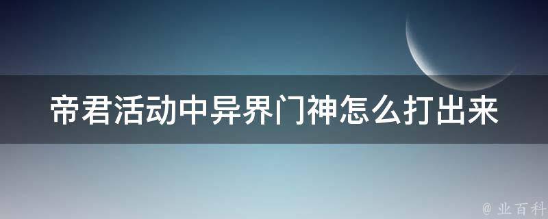 帝君活动中异界门神怎么打出来
