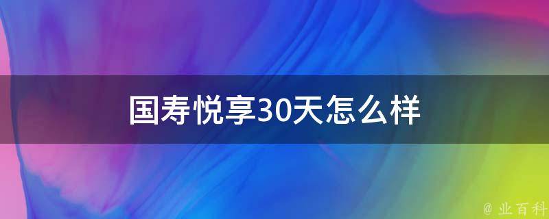 国寿悦享30天很好。国寿悦享30天是一款保险产品,其保障期限为30天,提供意外身故、意外医疗等保障。该产品的特点是保费低、保障全面、申请手续简便。然而,由于保障期限较短,对于需要长期保障的客户来说可能不太适合。