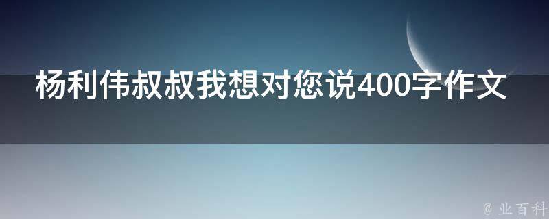 杨利伟叔叔我想对您说400字作文