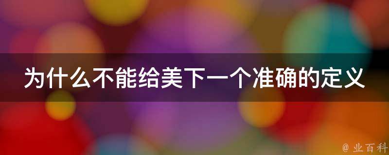 不能给美下一个准确的定义,是因为美是一种主观的、感性的体验,而非客观的、理性的概念。美的感受因人而异,不同的人对美的理解、感受和追求也不同。此外,美的内涵和外延也非常丰富,它涉及到艺术、文化、历史、哲学等多个领域。因此,我们不能简单地将美定义为某种固定的概念,而应该尊重每个人对美的独特理解和追求。