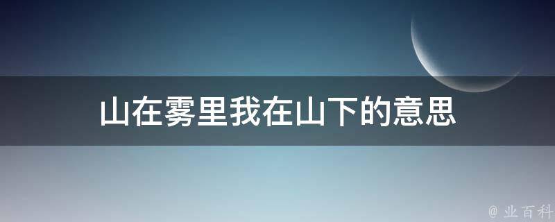山在雾里我在山下这句话是一种比喻,主要表达了一种迷茫、模糊、看不清前方的状态。这里的山可以理解为目标、理想、期望等高大的目标,雾则代表着迷茫、看不清、未知等状态,我在山下则表示自己目前正处在这个迷茫的状态中,无法看清前方的目标。