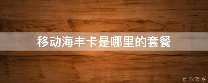 移动海丰卡是广东的套餐。移动海丰卡是中国移动公司推出的一种电话卡,用户可以根据自己的实际需求选择合适的套餐。该卡提供了全国范围内的通话、短信和上网服务,用户可以根据自己的通信需求选择不同的套餐,包括不限流量、不限通话时长等多种选择。