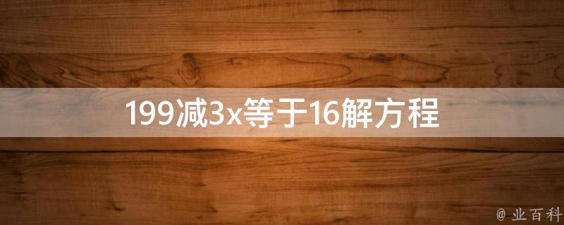 199减3x等于16解方程等于61。在这个方程里,我们知道x是未知数。根据题目,可以建立方程:199-3x=16,计算出x的值为61。含有未知数的等式叫方程,也可以说是含有未知数的等式是方程。求方程全部的解或判断方程无解的过程叫做解方程。