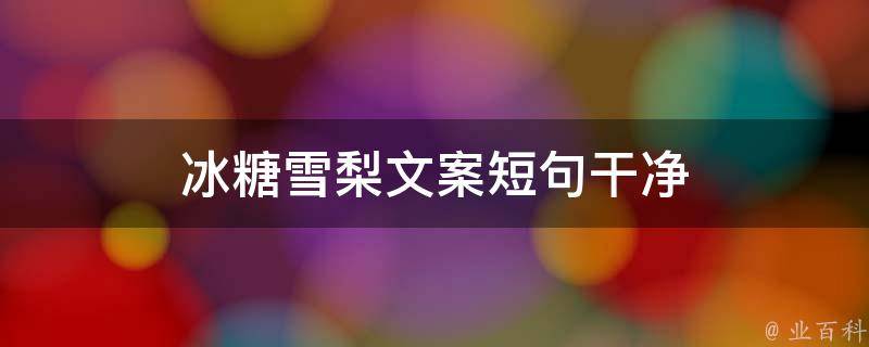最佳答案1、冰糖雪梨,是秋天的味道,是大自然的馈赠。每一口都蕴含着自然的纯净和美好,让人心旷神怡。2、冰糖雪梨,清甜可口,天然甘醇。在这秋意浓浓的季节,让我们一起品味自然的美好。3、在这冰糖雪梨的世界里,找到那份纯净、天然的美好,感受秋天的养生之道,让健康与美丽兼备。4、品味冰糖雪梨,享...