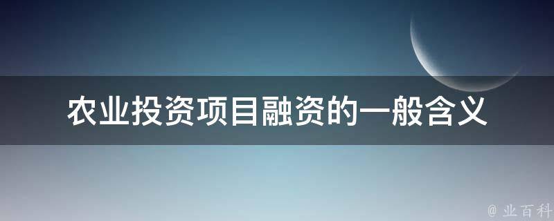 农业投资项目融资的一般含义