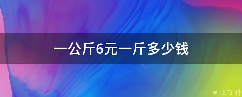 一公斤6元,一斤是3元。1公斤(kg)=2斤,所以由题可知6除以2等于3。斤也作觔,是质量单位,市制1斤为10两,2斤等于1公斤。其他单位换算:1公斤=1000克;1斤=500克;2斤=1000克;1斤=10两;1两=50克(g)。