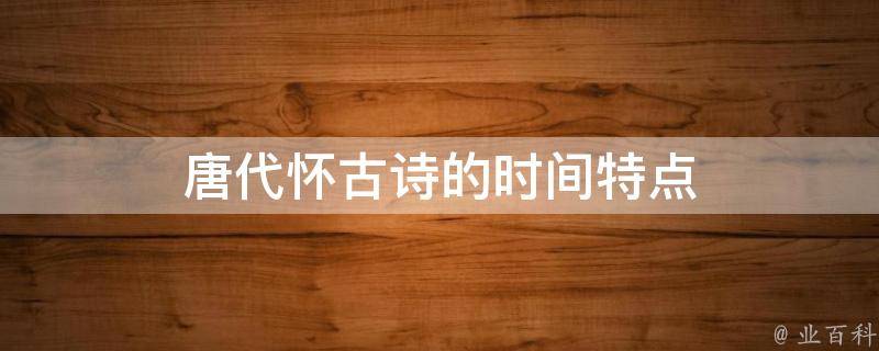 唐代怀古诗的时间特点是历史时间跨度大。唐代怀古诗往往涉及历史事件、历史人物和历史背景,时间跨度较大。诗人通过对历史事件的回顾和历史人物的缅怀,表达对历史变迁的感慨和对现实社会的反思。