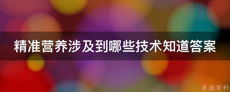 精准营养涉及到的技术有宏基因组、营养代谢组学、蛋白质组学、转录组学、影像学、生物信息学、人工智能等。精准营养,指人们在选择食物或进行营养干预时,应将自己视作人和微生物的超级共生体,通过基于个性化的营养支持来优化健康或预防、管理、治疗疾病。