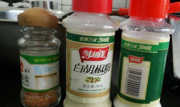 4、将藕片盛出,加入盐、胡椒粉和椒盐、香葱。