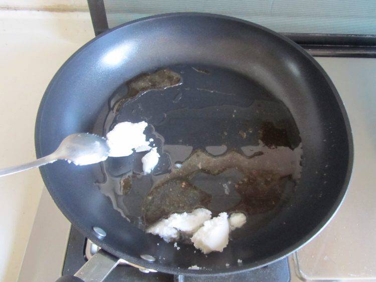9、另起一锅,留少许油,再加上适量的猪油。