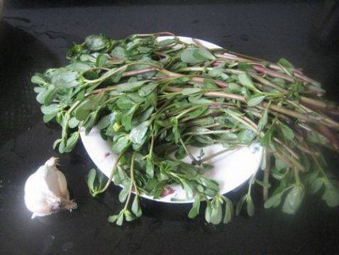 1、马齿笕洗净切段,大蒜切末。