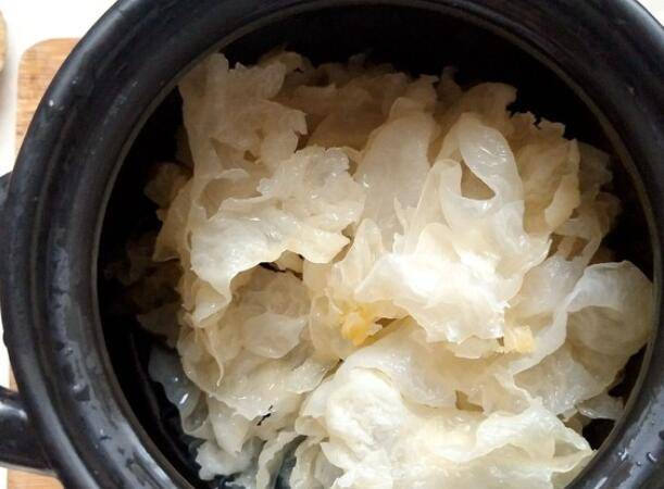 2、梨去皮削成小块,银耳提前泡发,摘成小朵,枸杞和大枣洗净备用。