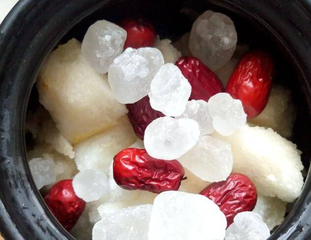 1、准备材料:梨250克、银耳、枸杞、大枣、冰糖适量。