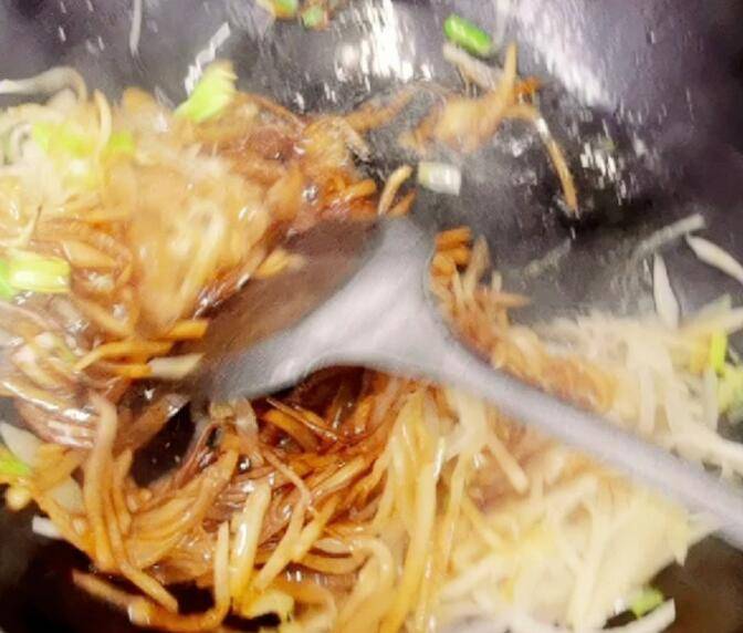 6.翻炒均匀,加盐、生抽翻炒均匀即可。