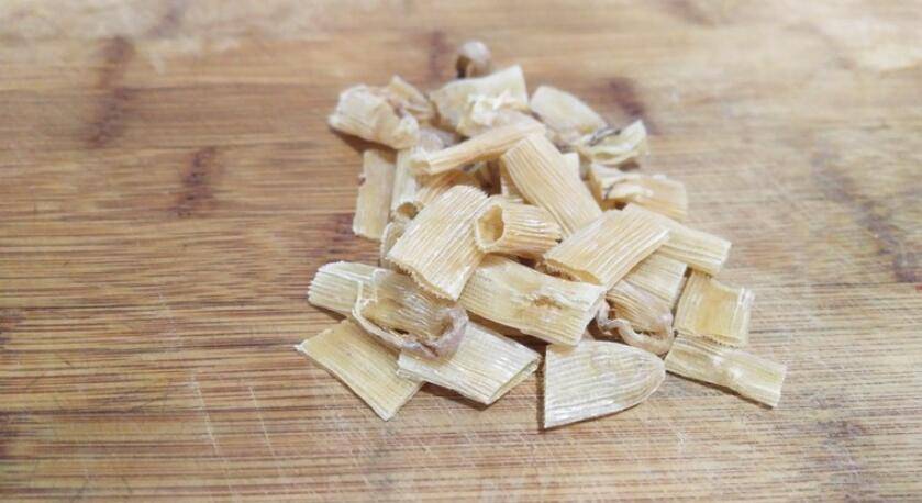 3、沙虫干用剪刀剪小段。