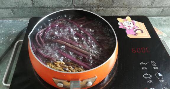 1、小锅里烧一锅开水,放入蕨菜再次煮开后煮3分钟。