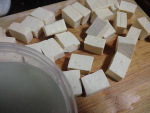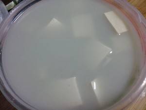 3、切好的豆腐放进拌好的臭豆腐乳水里,密封好后放进冰箱冷藏24小时。