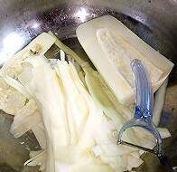 1、青瓜去皮去籽,削片。