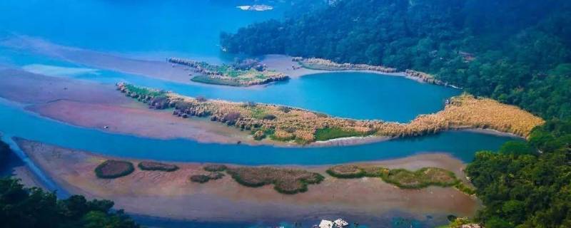 日月潭由玉山和阿里山漳的断裂盆地积水而成。环潭周长35公里,平均水深30米,水域面积达900多公顷,比杭州西湖大三分之一左右。日月潭中有一小岛,远望好像浮在水面上的一颗珠子,岛的东北面湖水形圆如日,称日潭,西南面湖水形觚如月,称月潭,统称日月潭。