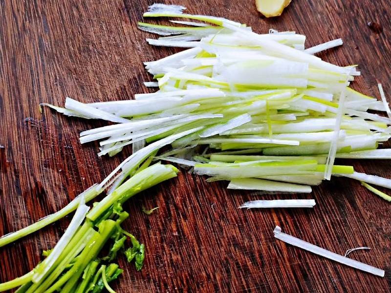 用料:海螺4个、大葱0.5根、香菜1根、蒸鱼豉油2勺、姜1片。