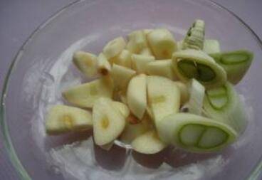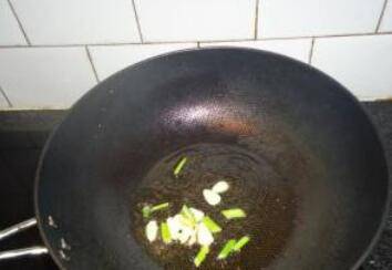 葱蒜切好备用,油锅烧热,放葱蒜煸炒。
