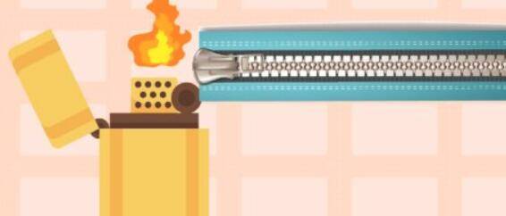 用打火机把脱落的那头布面烧一下,防止脱边,将拉链置于桌面水平朝上放置。
