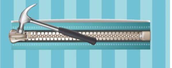 平时使用时,如果拉链发松与脱齿,可用小锤在拉链头上轻轻敲几下,使上下链齿咬得紧一些,就不会再脱齿了。