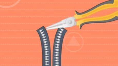 拉链头会顺着布带向外的张力下进到拉齿中,布带拉出后拉头就装上了,用斜嘴钳拔出多余的拉齿,不要太用力,以免将布条拉破,安装好下齿,防止拉链向下滑出。