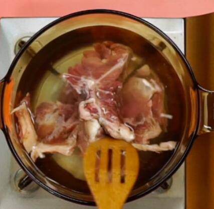 2、将姜切片,排骨冷水下锅,焯水去腥去血沫。