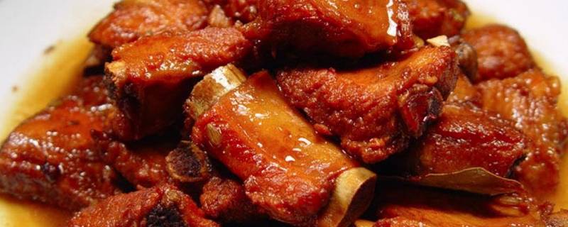 1、准备食材:排骨330克、生抽5勺、白糖2大勺、料酒2勺、姜片5片、香叶2片、桂皮1块、盐适量。