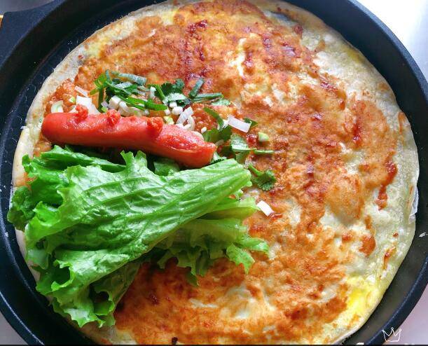 最佳答案1、准备食材:面粉110克、玉米面40克、食用油1勺、盐1小勺、水51克、鸡蛋、火腿肠、葱花、香菜。2、加入过筛后的玉米面和面粉。2、加水调成稀面糊。3、电饼铛最小火,舀入一勺面糊,快速刮平,打入一个鸡蛋刮平。4、翻面,刷上酱料,放入薄脆饼、肠、生菜、葱花、香菜等配菜即可。