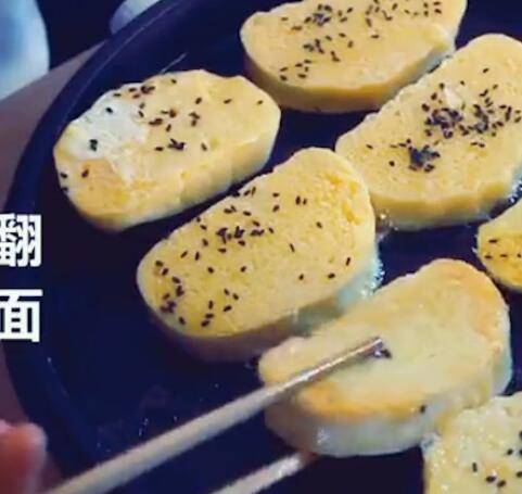 平底锅刷油,馒头片沾蛋液,撒芝麻,两面煎熟即可。