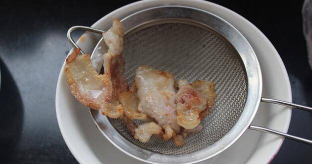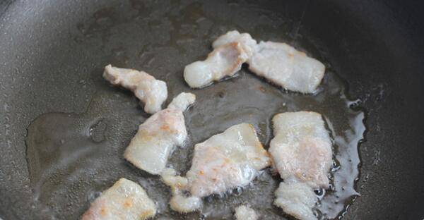 3、炒锅先不放油,把五花肉干煸一下,煸出油,再放适量油。