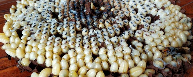 蜂蛹为胡蜂、黄蜂、黑蜂、土蜂等野蜂的幼虫和蛹,这些蜂都属昆虫纲、膜翅目、胡蜂等科类的昆虫。在湘西山区1年可发展2代~5代,采摘期应掌握在高龄幼虫至变蛹期最宜。蜂蛹系鲜活产品,除鲜炒取食外,大部分采用干制法加工,以便于贮藏、包装。