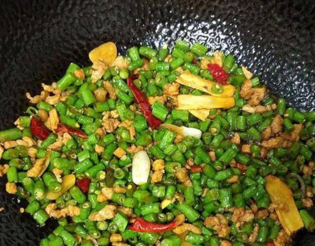 最佳答案材料:猪肉、豆角、葱姜蒜、花椒、青椒、干红辣椒。1、首先处理食材,猪肉切成小丁;豆角切成两公分左右的小丁;其余的配料切好备用。2、锅内放入稍微多一些的油,油温至六成热放入豆角和青椒圈炸至表皮起泡微皱,捞出控油备用。3、另起锅烧油,遵循热锅凉油的做法,放入肉丁煸炒。4、炒至肉丁变色...