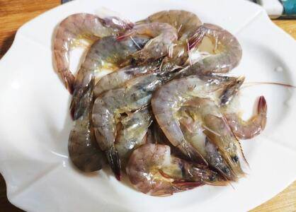 将基围虾洗净,挑去虾线。