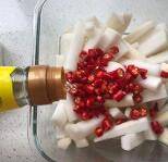 4、加白醋、小米辣椒、静置半小时。