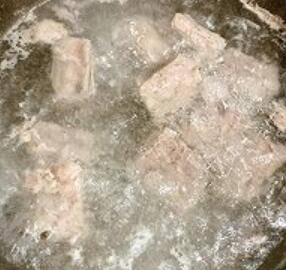 3、肋排冷水下锅,煮开撇除浮沫,冲洗干净。