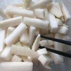 2、白萝卜洗净,切成条,小米椒切段,备用。