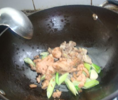 放入青椒翻炒2分钟,并加入适量的调味料翻炒均匀即可出锅。
