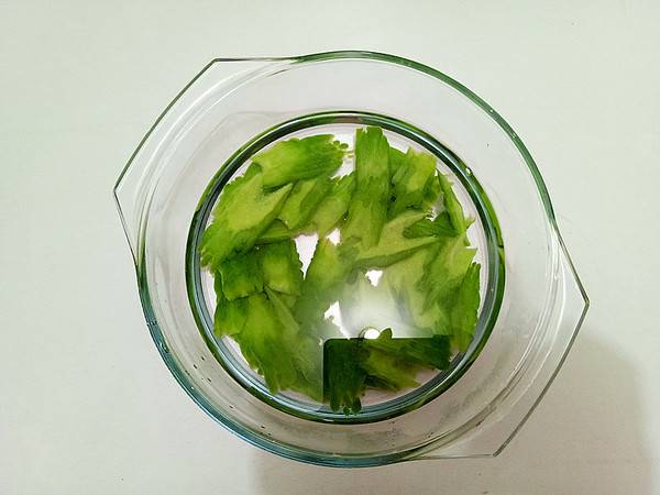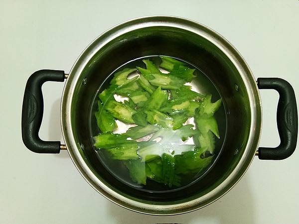 3、苦瓜入沸水中焯水。