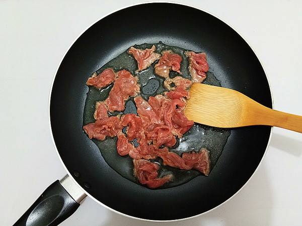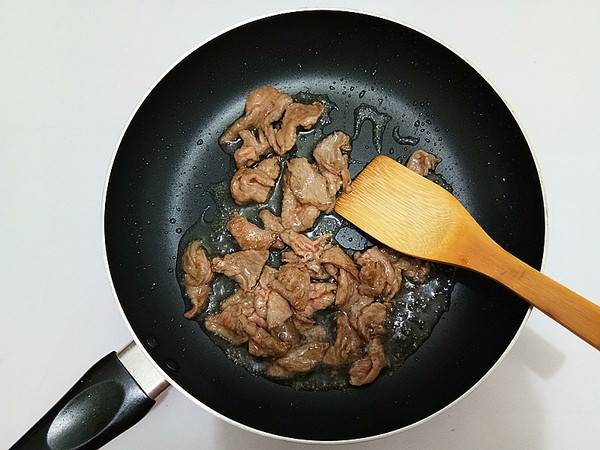 6、滑炒至牛肉变色盛出备用。