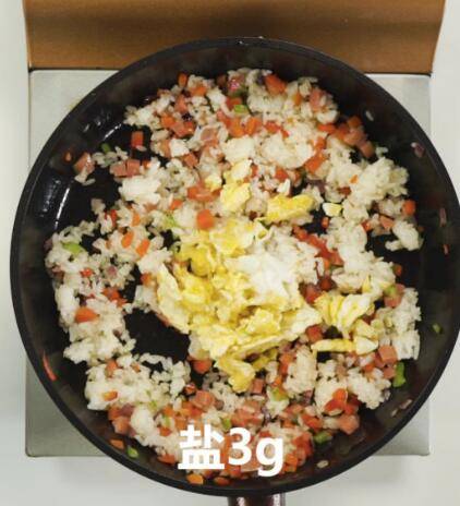 最佳答案主料:鸡蛋适量、洋葱适量、胡萝卜适量、香肠适量、青椒适量、红椒适量、米饭500克。辅料:食用油10毫升、料酒3毫升、盐3克。锅中倒油,放入蛋液翻炒。起锅放入油,放入洋葱、胡萝卜、香肠、青椒、红椒、料酒,料酒后翻炒。倒入米饭炒匀,倒入炒好的鸡蛋,盐,大火翻炒1分钟,出锅。成品。