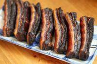 4、将泡好后的肉取出,用棉绳穿起来,吊在通风的窗口。晾晒三天左右即可。
