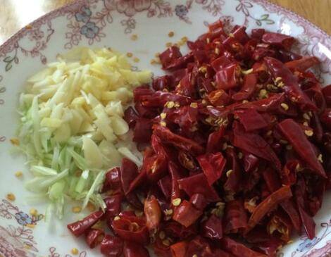 用料:泥鳅1000克、葱适量、姜适量、蒜适量、干辣椒20克、花椒10克、麻椒10克、食盐适量、食用油20毫升、鸡精适量、白糖适量、生抽适量。