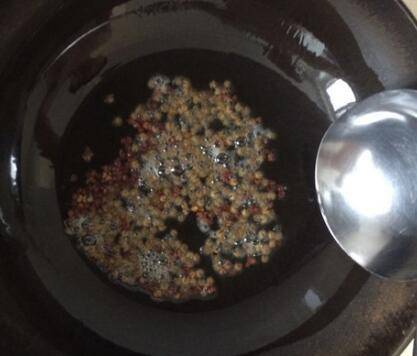 5、上炒锅,烧热入油,关小火,放花椒麻椒炒出香味。