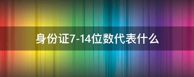 最佳答案7-14位代表出生年月日,比如19670401代表1967年4月1日。身份证号码是由18位数字组成的,他们分别表示:1、前1、2位数字表示:所在省份的代码。2、前3、4位数字表示:所在城市的代码。3、前5、6位数字表示:所在区县的代码。4、第7~14位数字表示:出生年、月、日,7、8、9、10位是年,11、12位是月...
