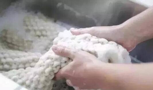 3、洗护过程中,要用手来回按压,不可以大力揉搓,会损伤衣服,包括清洗的过程也不能用手拧,要来回轻揉直至泡沫清洗干净。